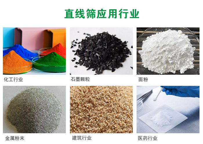 廣泛應(yīng)用于化工、食品、塑料、醫(yī)藥、冶金、玻璃、建材、糧食、化肥、磨料、陶瓷等行業(yè)中干式粉狀或顆粒狀物料的篩分。