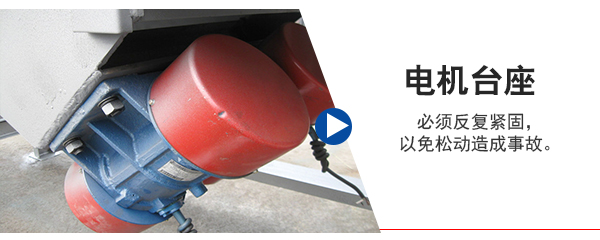 5、電機(jī)臺(tái)座:安裝振動(dòng)電機(jī),使用前連接螺釘必須擰緊,特別是新篩機(jī)試用前三天、必須反復(fù)緊固,以免松動(dòng)造成事故。